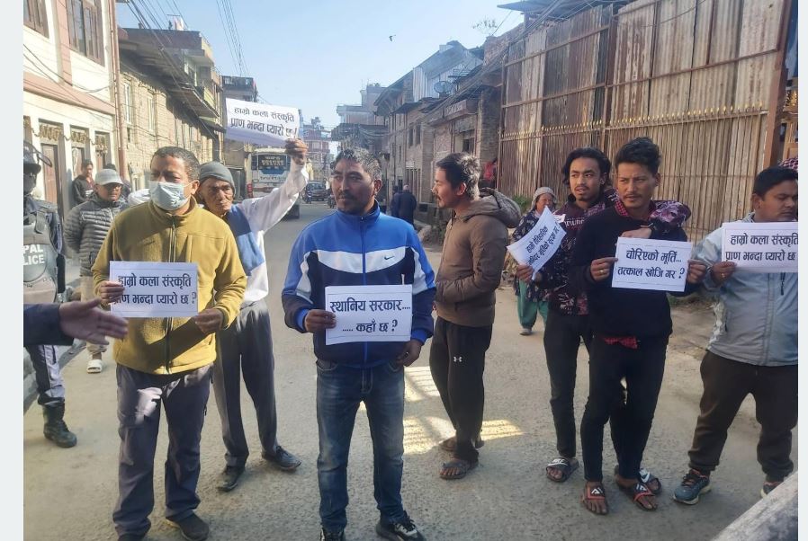 चोरी भएका मूर्ति खोजीका लागि दबाब दिँदै चापागाँउमा सडक बन्द
